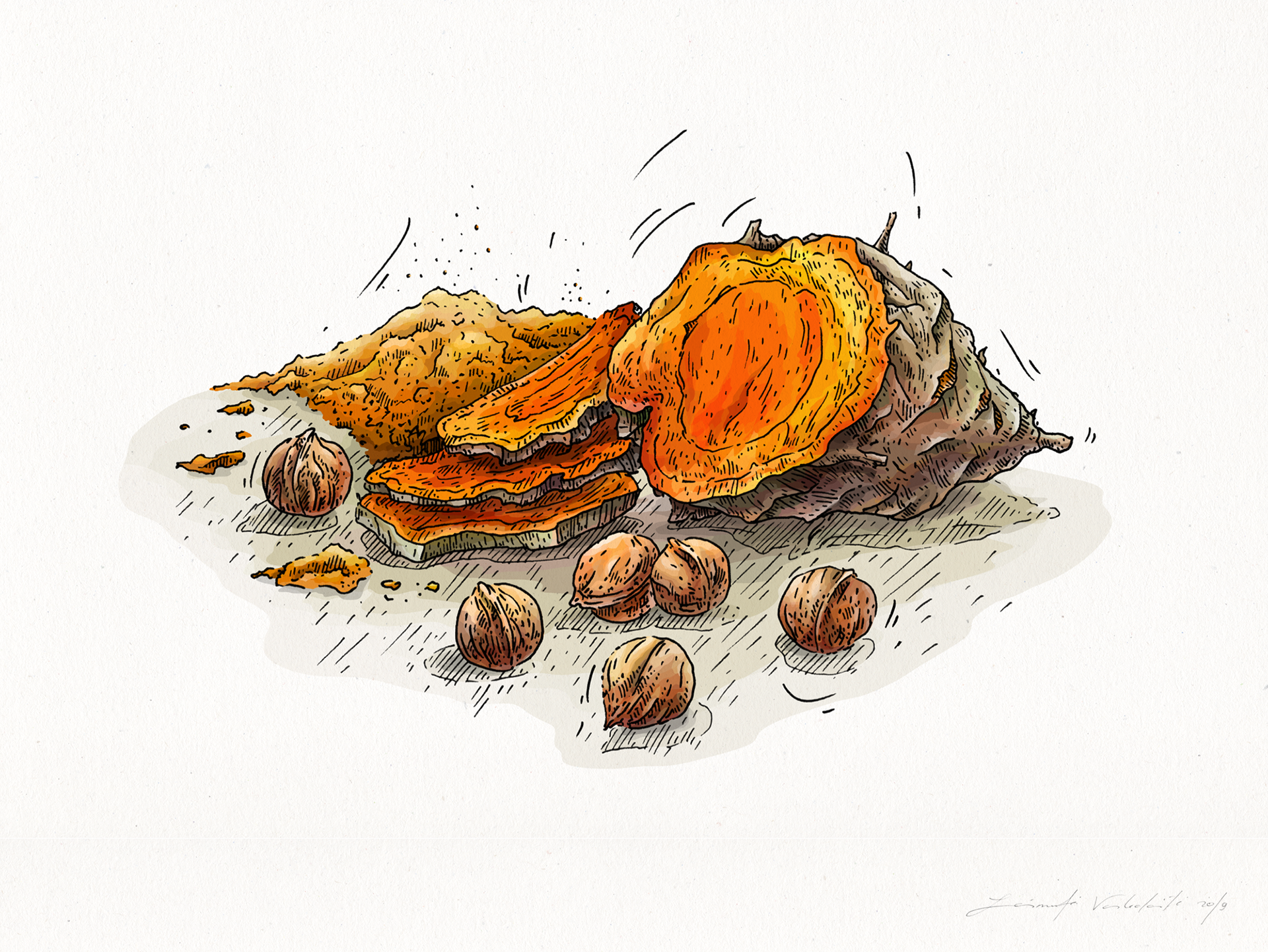 Also, a turmeric has looked to me very unusual object for illustration field and that was the reason why the final result became a great surprise for me.
